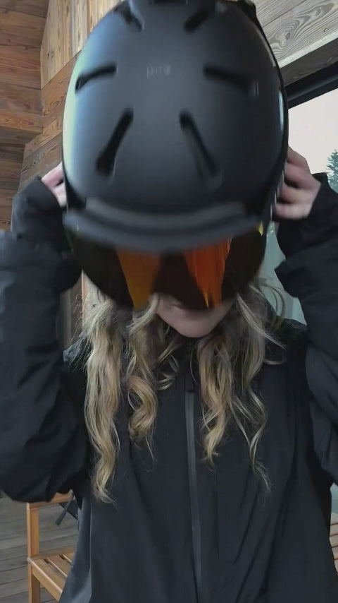 The adjustable strap and low-profile frame are designed to fit perfectly with most major ski and snowboard helmets